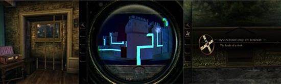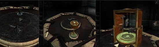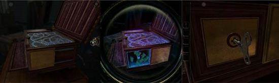 回到下面的房间,通过透视镜看这幅画,将光点走至终点,拿到表盘。