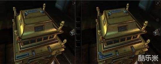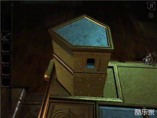 顶部翻开后,将左下角铁块向上推动,小塔出现,通过透视镜进入。