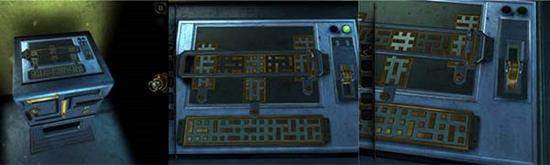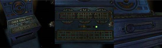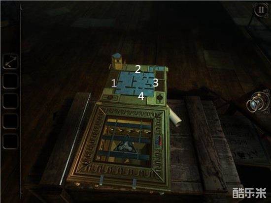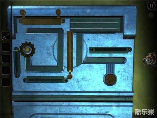 将箱子右侧滑板拉至右边,通过透视镜可以看到一些碎积木,将其拼好,浮现十字插口。将转轴钥匙插入,转动。