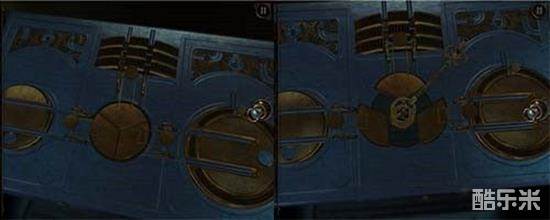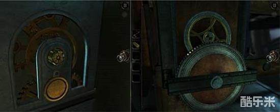 发现里面有个齿轮箱,将手柄插上(中间的区域可以旋转,上方可以滑动)步骤如图所示,将齿轮送至圆圈处,按下按钮。