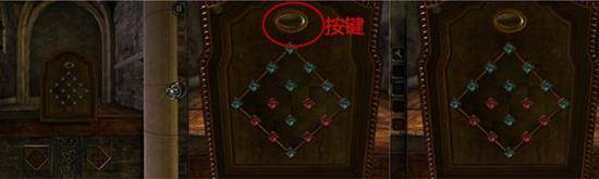 退回至房间,看向这个地方,最下方缺了一颗宝石,将红宝石装上。参照下面两个图形摆出。(记得摆好后点击上方按键。)