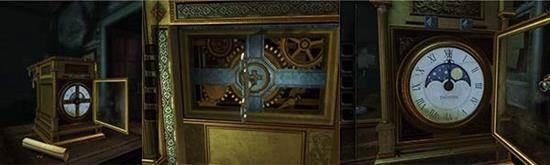 回到这里将表盘放上,左侧出现十字插口,将转轴钥匙插入,表面转至12点。