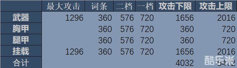而暴击的加成,有两种途径,主要词条的暴击转化为暴击率,和次要词条的暴击率直接附加。主要词条的暴击值,是攻击词条的1.583倍,也就是说,四件套总和的范围是2280-4560。