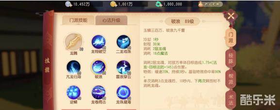 在门派技能的选择上,这种半肉流的龙宫玩法可以使用一些功能性的技能来帮助队友更好的输出。龙宫的“破浪”技能冷却时间只有1秒,技能的刷新非常快。攻击敌人后还会让敌人减速,虽然伤害不是最高的,但带来的减速效果却可以降低敌人的威胁,让身边的伙伴更好的输出