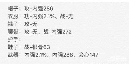 根骨>内功强度>内功强度百分比>会心>会效>根骨百分比