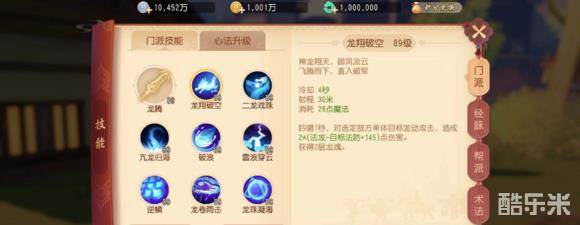 游戏中暴力流的龙宫玩法肯定要选择一些高爆发的技能来使用。在龙宫的众多技能中,“龙翔破空”和“二龙戏珠”都是十分强大的单体技,当打BOSS时可以选择这些技能来对敌人造成高额的伤害。