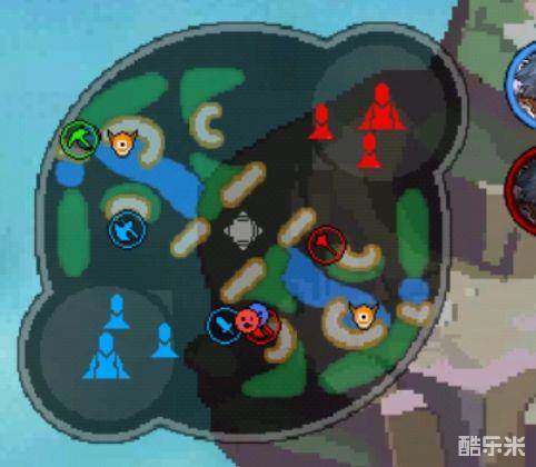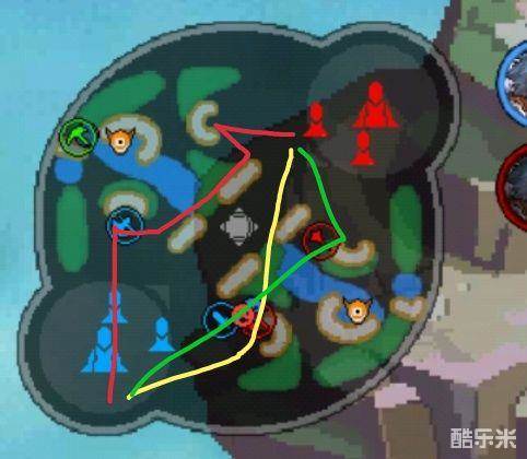 地图的分布并不是一个很标准的上下路地图,游戏中的地图,上下路是有区别的,蓝色方上路离家近,红色方下路离家近。