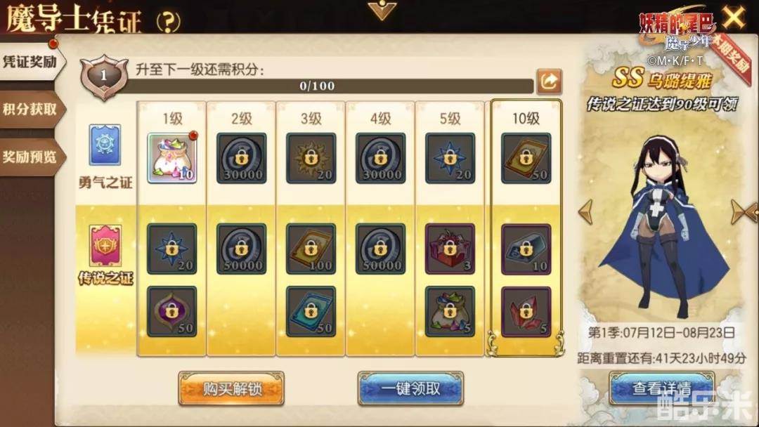 获得的凭证积分可以用来提升积凭证等级,每升一级即可解锁新奖励!勇气之证达到90级的时候,可获得毒性控制型S级助战柯布拉;传说之证达到90级可获得生命献祭型SS级助战乌璐缇雅!