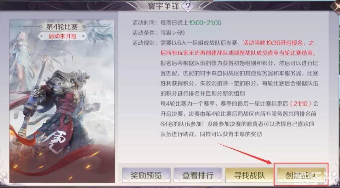 寰宇争锋需要修真者组成6人战队,且要在规定时间内报名才可参赛,目前组队功能已经开放,修真者可提前进行组队,周日开启时直接进入比赛。