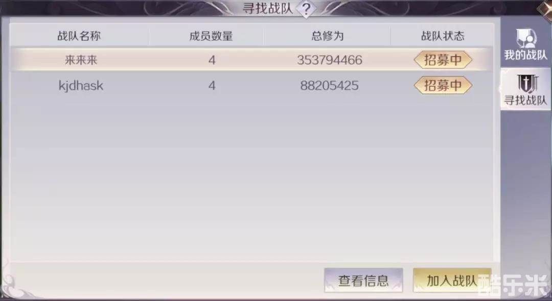 没有战队的修真者,可以使用寻找战队功能,选择心仪的战队加入。