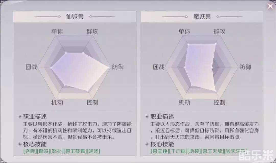 妖兽:团队buff技能可给队友加成血量上限和攻击力,技能毁天灭地能造成无视防御的大量伤害。