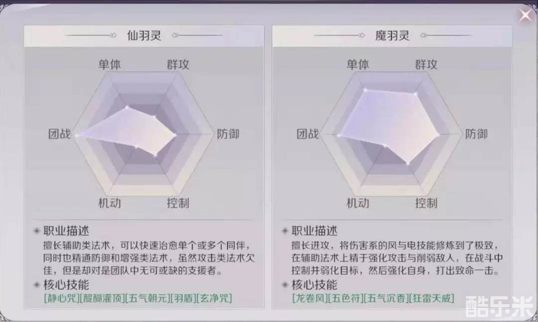 魔羽灵机动性强,持续伤害高,单体控制能力出色(五色符、神之封印),还可给队友增加攻速、施法速度、冷却速度等。