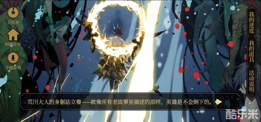英雄不朽,以血作别,泛红的川水仍在不息奔涌,微光之中结界再度凝聚。如有万千川灵在执着回应,即便倾尽所有,亦要与命运对抗。