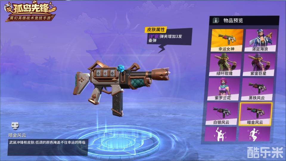 在《孤岛先锋》游戏中,枪械武器因为伤害出众、造型酷炫而广受欢迎,枪械皮肤也成了玩家们最爱收集的道具。本次更新带来的枪械礼包尤其令人惊叹,它带着幸运女神的祝福气息,玩家开启后有几率获得武装冲锋枪的传奇皮肤-幸运女神。