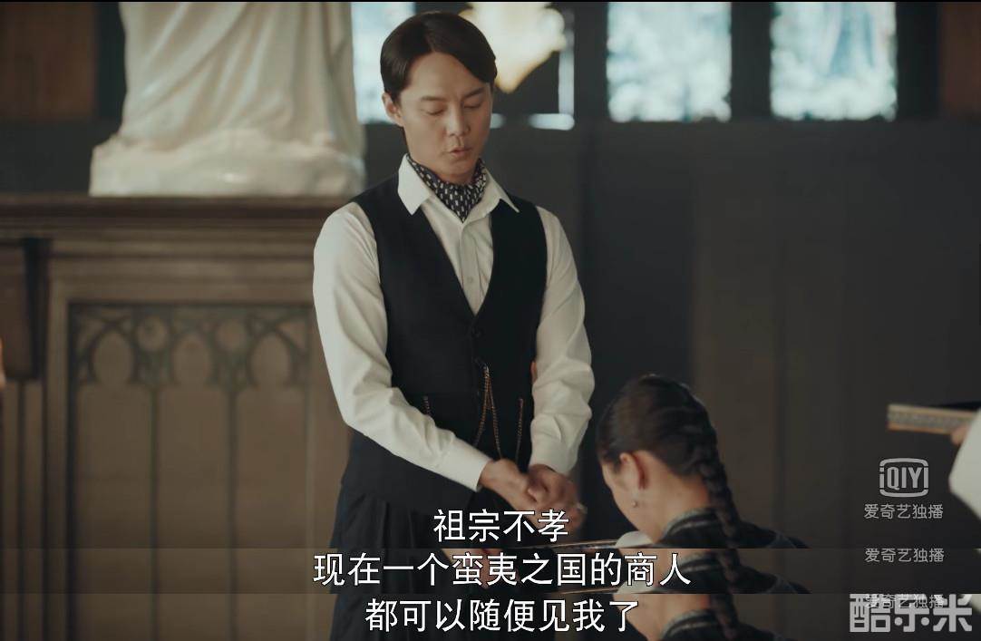 一出场就在教堂弹钢琴,一身洋装,优雅从容,自带气场。听说佐藤一夫要见他,一句“现在一个蛮夷之国的商人都可以随便见我了”,表现出贝勒爷对日本的鄙夷和痛恨,以及高贵傲岸的性格。