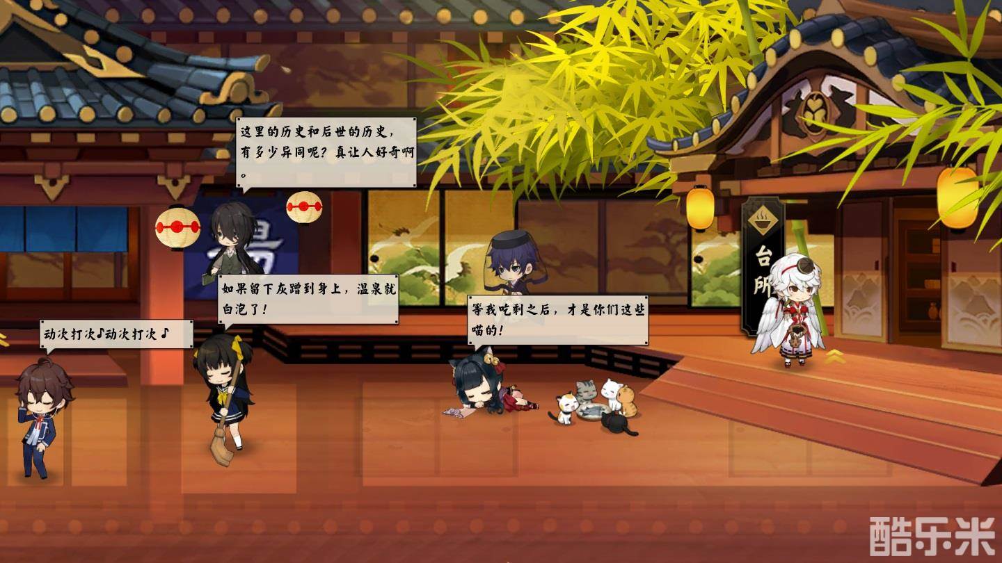 一起做料理、泡温泉、喂猫、打盹、喝茶、下棋、分担家务、道场锻炼……通过指尖轻触屏幕即可完成交互触碰,收听他们或害羞或欢喜的语音,还可以为他们摘掉嘴角黏上的饭粒,擦拭被温泉水打湿的长发。