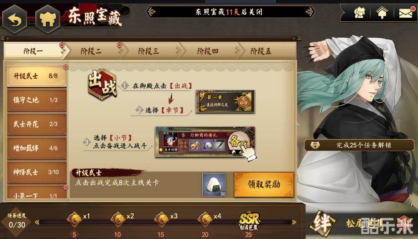 东照宝藏开启!新手任务赠送SSR武士松尾芭蕉·羁绊卡!