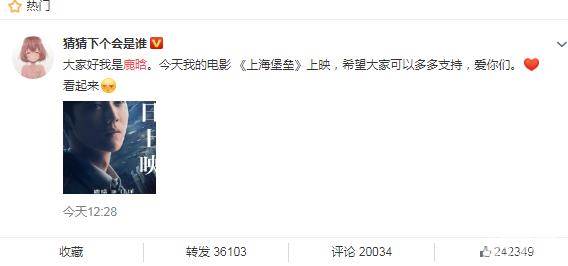 鹿晗的好兄弟黄子韬,变身宣传小能手帮鹿晗宣传新电影。黄子韬又调皮了!自称鹿晗为《上海堡垒》打call:“大家好我是鹿晗。今天我的电影 《上海堡垒》上映,希望大家可以多多支持,爱你们。看起来。”