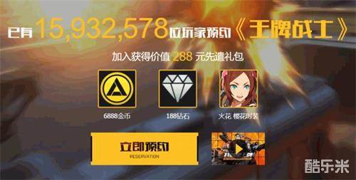 现在登录官网参与游戏预约,即可将价值288元的先遣礼包收入囊中:6888金币、188钻石,以及人气角色“火花”永久时装。相信在《王牌战士》正式上线后,这些福利能更好地助力各位玩家征战竞技场!