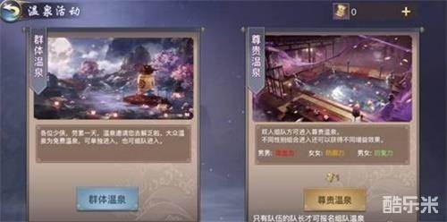 除此以外,作为一个纯福利性玩法,游戏中的温泉活动是允许玩家单独前往,免费参加的,或者玩家也可以和好友组队进行,虽然温泉活动分“群体温泉”和“尊贵温泉”两种,其中一种需要玩家花费2000金购买一张温泉票才可以进去,但是如果玩家是组队前往的话,只需要队伍当中有人购买一张温泉票,就可以带着全员进去,无论他是不是队长,这一点还是非常有爱的。