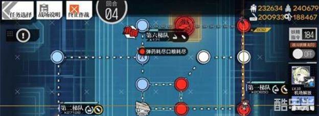第四回合,狗粮下方雷达只要站上去就会清理掉强无敌,所以要做全清理的目标的话就踩上,做占领指挥部的目标的话就用你自己指挥部的梯队到敌军右边占领,图里是全清理的情况
