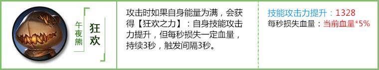 午夜熊的宠物技能很适用,但限制的条件比较大,需要带上回蓝技能或天赋,同时也有不少装备带回蓝、回血效果。加上有自损的效果,适合灵活性较大、走吸血流的冰女和游侠。