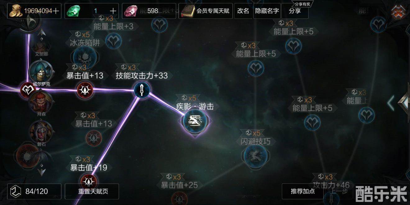 2、创建角色建议精灵射手(跑图用),一般分两种玩法,第一种,直接用精灵射手刷,副角色骑士经验获益;第二种,精灵跑路,骑士刷(满足操作骑士的需求)。这两者都有一个共同点,要利用到射手的一个天赋(疾影–游击),此天赋可以在前期就赋予射手强大的跑图能力,(2s一次位移,手感自己把握)至关重要。另外位移建议附加加速类,三十级后可以换闪烁以应对更密集的怪物和可跳跃地形。