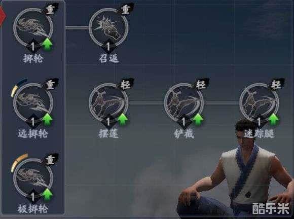 从招式上看,跃掷轮伤害109%,但实际上你轻轻重打出去只有50%的伤害,差的伤害在血滴子飞回后才有。