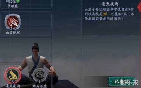 首先是被动,这个被动加攻击在所有武器被动里绝对是最夸张的,满层40%功持续9秒,配合血滴子招式的多段特性很容易叠满。