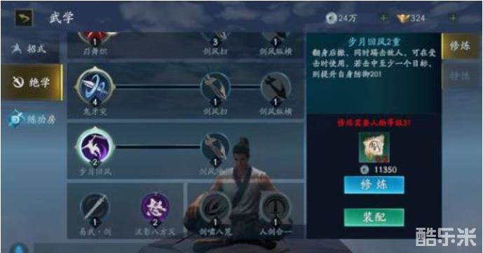 七重有两个特效,减少精力消耗或者2秒疾跑buff。应该还有七重特技步月回风
