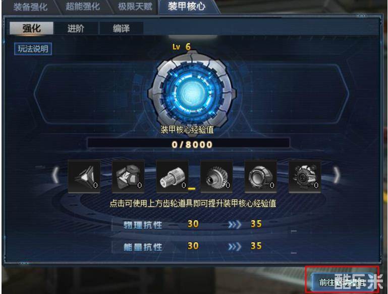强化:需要什么装甲零件,高级装甲零件,装甲齿轮,高级装甲齿轮,装甲核心碎片,高级装甲核心碎片。