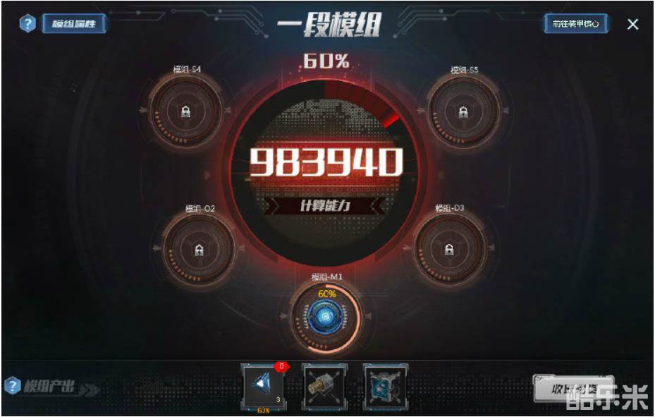 类似于装备强化,只要点击那六个槽位里的东西升级就可以了,这些东西名字很复杂不用记,你只要知道在右下角有个“前往驱动模组”然后点进去,一段模组中有五个模组,必须按顺序解锁。M1-O2-D3-S4-S5按此顺序解锁。解锁的模组越多,零件产出效率越高。点击模组进入,上面有四个空槽位,鼠标悬停,放入系统推荐的装备,收益是最高的。然后就跟“收菜”一样,每天固定十二点你就能在驱动模组界面收获到你需要的可以用来升级的材料
