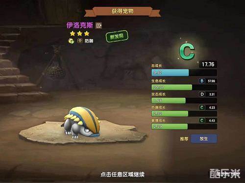 每当我们获得一只新的宠物,同时也会获知这只宠物的评级,它的四位成长极限值还有整体的评价。当一只宠物主要属性和总成长在B级以上时,我们相信这只宠物是值得培养的,如果不足,那么就忍痛放生吧!