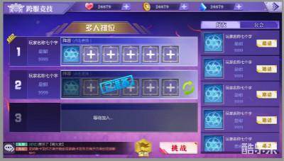玩家可以通过自己的好友或公会列表邀请朋友一起参与跨服竞技的挑战、