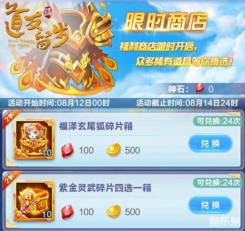活动期间,神石商店限时开启。