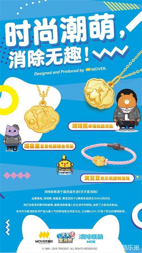 与快时尚潮牌魔吻合作上线转运金饰,精心提取消除联萌的萌物形象进行款式设计,结合金饰的传统吉祥寓意,每只都用自己独特的可爱魅力为你“消除坏运气”。