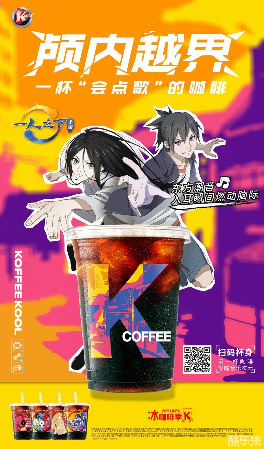 这款Kcoffee咖啡杯身上定制的二维码,拿起手机一扫,就能通过Kmusic点播歌曲,一秒越界到《一人之下》手游的潮音领域,这个夏天你就是整条街最靓的仔。