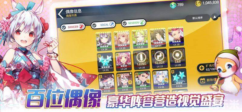 音乐成就梦想,偶像指引前路!就在今天,在《偶像超音速》这个属于二次元偶像的世界中,百位不同种族和年龄的少女偶像,将在你的打造下集体出道!在这里,你可以和小伙伴比拼手速、聆听音乐带给你的感受,体验偶像长成之路。