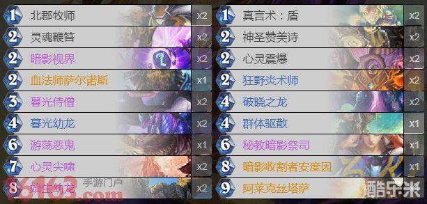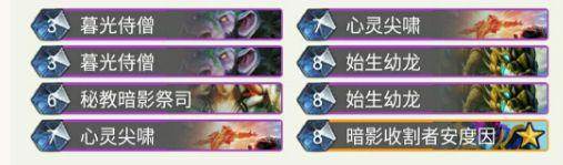 暮光侍僧再次出现在了这里,他更多的是在9费之后配合秘教暗影祭司来控制对手的随从。
