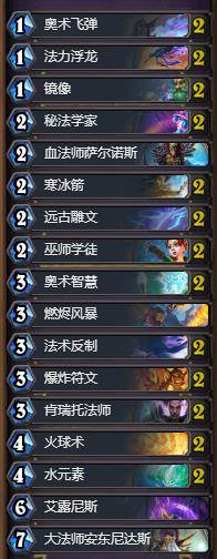 相信很多小伙伴刚刚接触这个游戏的时候,就已经被法师这个职业所吸引,她的职业基础卡可以算是强度最高的了,操作起来相对简便,所以下面这套牌无论是对接触炉石时间不是很长,还是新版本缺卡的玩家,都是优先级很高的选择。