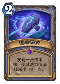 一张关键卡,法力浮龙无限雕文?虽然是个梦想,但是运气这玩意谁又说的准呢?远古雕文作用在于对法术牌的减费,可以把费用储存在发现的法术上,那么发现的低费法术如果能留到配合安东尼,那就大赚,即便不行,一些时候也能打出出其不意的超高斩杀,对付那些贪的对手再合适不过。
