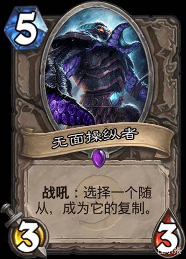这牌的灵感是来自幽兰戴尔,好像是安哥洛奶骑大火那阵子,带来针对骑士的。加上肉块术的展开,无面这牌很多人开始用了,前阵子沙叔也带了,打术士复制一个939就非常赚了。