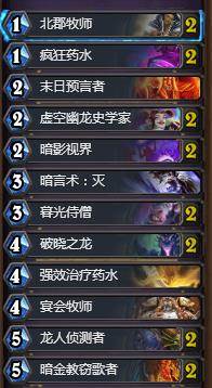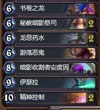 疯狂药水:打快攻+打术士522的牌。顺带一提,这套卡组暗影视界能检索5种法术:小狂乱,药水,龙息,精控还有暗影视界本身。所以一定要注意法术的上手情况便于神抽。