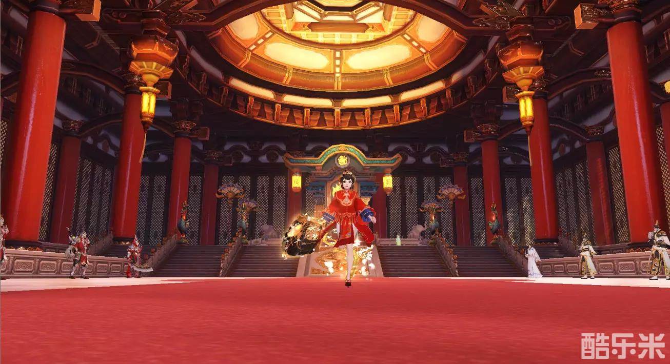 国风汉服季,《天下》手游可不只有长短不一的各色汉服,更有古典婚服“凤凰于飞”!正红色礼服象征着吉祥如意,烫金丝线绣出龙凤呈祥,鎏金配饰与摇曳流苏遥相呼应,老祖宗留下来的衣服果真精致度与华丽度双双满分!在“乄莉莉儿”少侠投稿的这组“凤凰于飞”艺术照当中,端庄典雅的火红色婚服与皇宫红毯映衬的十分和谐,抬手作揖间尽显古典韵味。头上戴有镂空飞凤金步摇,肩若削成,腰如约素,身骑黑马简直美如画!淡扫娥眉眼含春,樱桃小嘴不点而赤,用“娇艳欲滴”来形容最是合适!大荒最佳摄影师非你莫属!