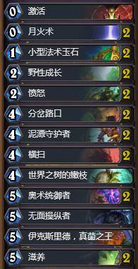 AAECAZICCP4BtAOTBKG3AuC7ApnTAqPmApvoAgtAX9MDxAbkCL6uAqDNAofOApjSAp7SAtvTAgA= 先说一下几个卡位选择 跳费选择了泥潭而不是绽放,原因是泥潭快攻抗性更好且在后期摸到可以提供还算可观的站场,并且可以起到一定的防脏鼠功效。 无面选择的5费无面而不是三王子,原因是OTK时并不缺这2费,非OTK时伊克斯里德+无面可以造两个大怪而不是两个33。 然后说一下几个致胜点 首先是OTK体系(注意,只有在对阵有回复能力的控制卡组时需要用到嫩枝进行OTK斩杀,即靠蓝龙赢),在无嫩枝时斩杀仅有蓝龙双月火12点,在有嫩枝时,理想情况伊克斯里德+无面+嫩枝砍+蓝龙+双月火=43斩,组件不齐时可拆开使用,如蓝龙+嫩枝砍+无面+双月火+横扫=37斩,以此类推。 然后是跳费体系,嫩枝+麦迪文+终极感染的combo可以做到瞬间强势返场,除了对阵控制术,其余对局基本打出就可以宣告胜利(特别提醒对阵极速快攻如快攻德,即使起手嫩枝+麦迪文也不要留,因为没有传播瘟疫一定活不到8费,对阵中速快攻如王子贼可留)。 接着是铺场体系,这套卡组虽然只有9个随从,但是在传播瘟疫和麦迪文的支持下,铺场速度是非常快的,另外还有几个铺场combo,王坤+伊克斯里德+无面,滋养+伊克斯里德+奥术统御者,等等,一旦对手处理不掉,就可以用一分卡分岔咆哮进行终结。 最后是苟活体系,这套卡组还有一个特色就是如同新版青玉德,防御能力和回复能力极强,靠传播瘟疫、DK、强效分岔药水苟住获胜的对局不计其数。 最后说一下对局思路 不知道对面形态默认为第一种形态。 月火并不一定要用来斩杀,0费打1也是一张不错的解场牌,除非打不靠第一种致胜思路就赢不了的对局,月火该用就用。 成长和泥潭为所有对局起手必留卡,伊克斯里德、无面、蓝龙、月火、奥术统御者、王坤所有对局都不留,不再额外说明。 德鲁伊: 快攻德:均势对局,起手找愤怒、传播瘟疫、DK,有玉石和分岔路口可都留,否则都不留,打快攻德最重要的是传播瘟疫,以及用升级过的玉石处理通道爬行者,胜负点其实就看发牌员能不能让我们抓到传播瘟疫。 青玉德:大优势对局,起手找跳费、嫩枝、终极感染、麦迪文,只要过到蓝龙直接骑脸,青玉德解不掉,基本蓝龙站场两回合就赢了。 猎人: T7猎:小优对局,起手找玉石、愤怒、传播瘟疫、横扫、DK,整体思路和快攻德差不多,由于T7猎场面压力没有快攻德大,而且我们这套牌回复能力极强,基本一张DK就可以劝退,比快攻德稍好打一些。 法术猎:均势对局,起手找跳费、嫩枝、麦迪文,打法术猎要走第三条致胜思路,用场面压死对手,尽快跳到高费铺一地,让猎人解不过来就赢了,当然如果猎人很顺起手双奥秘四狼上警,而我们只能解掉1-2只狼那就肯定输了,另外如果对面4费准时巴内斯拉亚煞极就跑吧。 法师: 奥秘法:劣势对局,起手找玉石、愤怒、横扫、DK,这个对局根据手牌以不同的思路对阵,主要就看一张牌就是DK,如果没有DK,赢面只有10%,只有一种获胜方式就是铺场,所以即使是4费,泥潭也点左边,只有铺的比法师多,才有机会获胜,否则就只有等死;如果有DK,赢面在70%,思路就是苟,无脑苟,苟到法师疲劳就赢了。 控制法:劣势对局,起手找跳费、嫩枝、麦迪文、终极感染,由于冰箱的存在,OTK是不可行的,要赢只有靠快速跳费到麦迪文一波,一旦麦迪文一波被解掉且两回合内没有拿下,让法师缓过来就没有赢面了。 任务法:优势对局,起手找跳费、嫩枝、麦迪文、终极感染,任务法虽然控场能力很强,但是解场能力依赖宝典,蓝龙骑脸即使被冰住也能横扫破冰斩杀,前期只要蹭到斩杀线,很容易让任务法无力抵抗。 骑士: 快攻骑:优势对局,起手找玉石、愤怒、横扫、传播瘟疫、DK,由于快攻骑大部分生物都是1-2血,极怕横扫和传播瘟疫,我们只要横扫、传播瘟疫、DK5张抓到2张就能拿下对局。 鱼人骑:劣势对局,起手找玉石、愤怒、横扫、传播瘟疫、DK,如果鱼人骑没有巨壳龙,那我们是优势,如果有,那就很难打了,传播瘟疫在巨壳龙面前真是不堪一击。转念一想连巫妖王都拜倒在鱼人浪潮下了,我们输的也不算没面子。 牧师: 宇宙牧:优势对局,可以说我这次的传说之路就是踩着各路快攻和宇宙牧上的传说,打宇宙牧根据嫩枝上手速度和对手天胡程度有三种获胜思路,第一种是OTK思路,这建立在对手不胡且嫩枝在10费前摸到,除了OTK组件其余牌全部空扔给过牌卡挪卡位,疯狂过牌凑齐组件然后斩杀,这种思路下分岔路口=分岔智慧;第二种是铺场思路,适用于嫩枝不上手且对手58同城,利用伊克斯里德、传播瘟疫、奥术统御者、泥潭,一波接一波的铺场,把牧师的血线一直压低,让他疲于解场和回复,只要打进12血即可蓝龙月火斩杀,这种思路下分岔路口=分岔咆哮;第三种是苟活思路,适用于嫩枝在10费前摸到但对手也胡了,思路同OTK思路,但这种情况下分岔路口不用来过牌而是用来回血,这种思路下分岔路口=强效分岔药水。 恶毒龙牧:小劣势对局,起手找玉石、愤怒、跳费、嫩枝、麦迪文,输在前期没有解场牌被滚雪球崩盘,赢点在麦迪文一波返场,蓝龙月火玉石也可以解两个大怪返场,恶毒龙牧没有直伤法术被精控也不亏。 心火龙牧:大劣势对局,起手找跳费、嫩枝、麦迪文、DK,这套牌最大的缺点就是没有消灭字眼的牌,面对超过10血的庞然大物毫无办法,一旦心火牧造出一个哪怕只是14-14都只有一种一个疯狂药水就没了的解法叫做12剧毒蜘蛛,这个对局哪怕