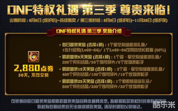 第三季礼遇特权尊贵来临!大家有没有心动呢?在给哪个角色购买方面,很多小伙伴就陷入了沉思,不知道如何选择,当然每个角色都买的土豪就另当别论了。来看下DNF特权礼遇第三季适合哪些玩家的分析。