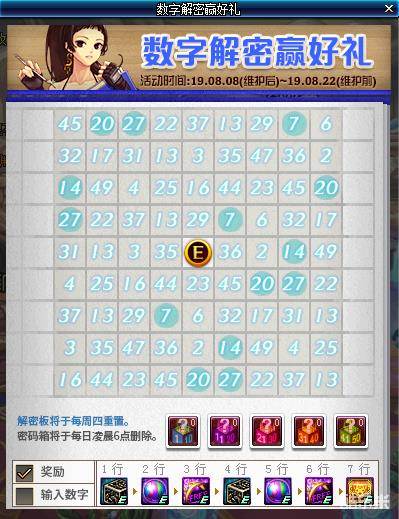 点击疲劳值上方的活动图标即可出现数字解密板,解密板上会随机出现81个1-50的数字。勇士们可以点击中间的问号图标回答暗号,答对暗号后可以点亮正中的数字。通关推荐地下城可以得到解密礼盒,打开解密礼盒能得到密码箱,密码箱可以为解密板解密数字,解密出一定的数字即可得到奖励。