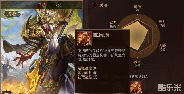 但是等到了游戏后期,玩家们就要考虑将骑兵兵种征召的主力放在铁骑兵和重骑兵上,同时注意打探一些具有骑兵技能的名将位置,例如韩信这位名将就拥有着对于重骑兵15%的生命力加成,马超更是拥有“西凉铁骑”这样对于铁骑兵多方位加持的的名将专属技能。最终将兵种和武将统一起来,那样就可以做到战斗力最大化。