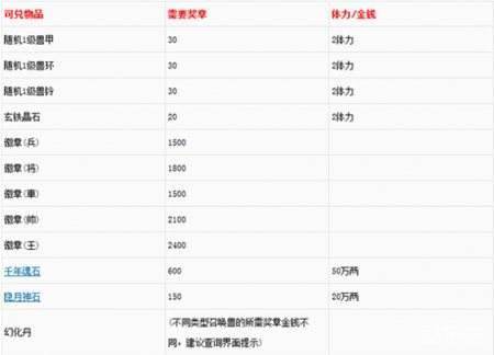 召唤兽比斗可兑换物品