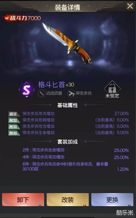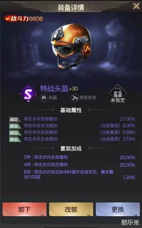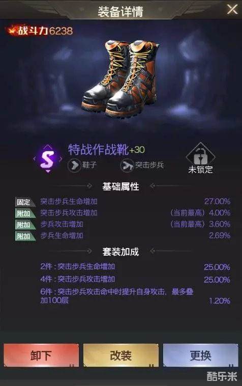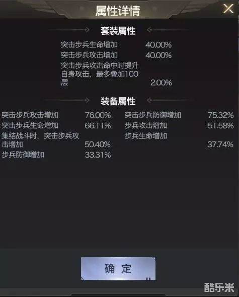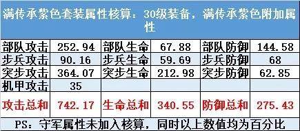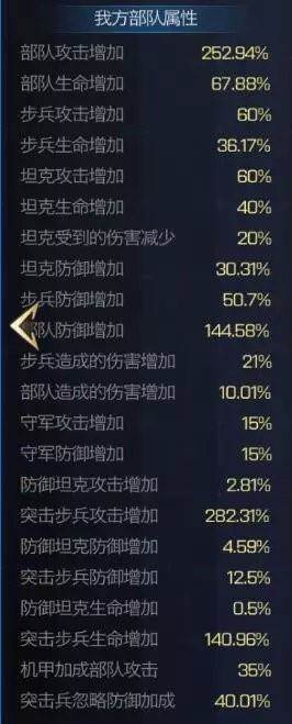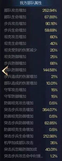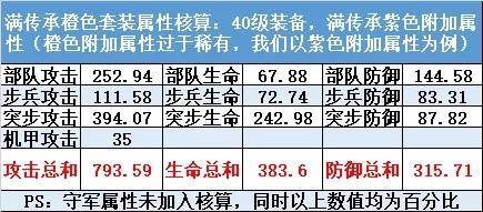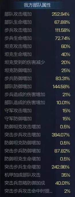 橙色套装四条属性:突步攻击,步兵攻击,防坦生命,坦克生命